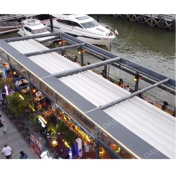 Motorized Electric Custom Made Strong Aluminium Patio Cover Roof Retractable Fabric Pergola For The Mansions